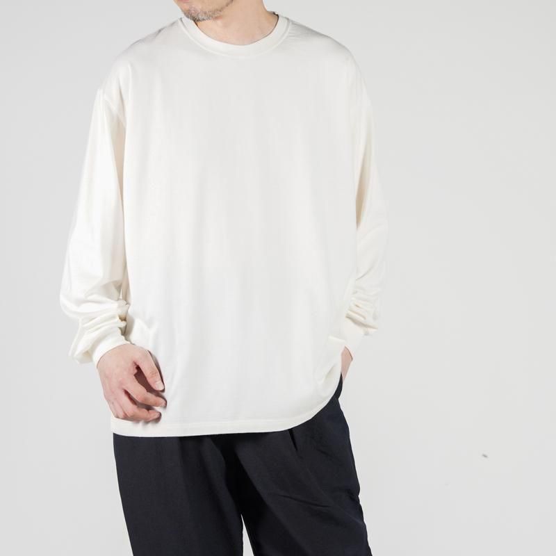 カジュアルとドレスカットソーの中間値を表現した、1枚着でも透けずインナーにも最適なミドルオンス(6〜7Oz)のBODHIオリジナルファブリック。 吸湿、放湿性、消臭効果と、低い熱伝導性が身体を常温を保つ天然の機能性素材です。