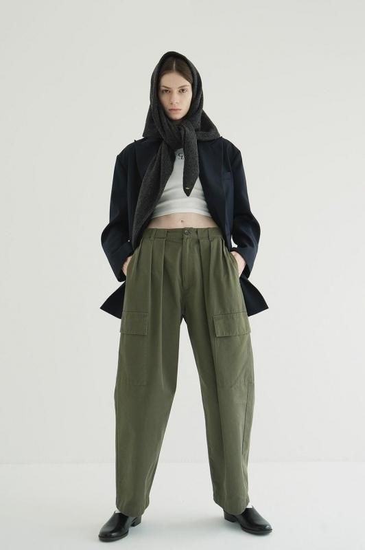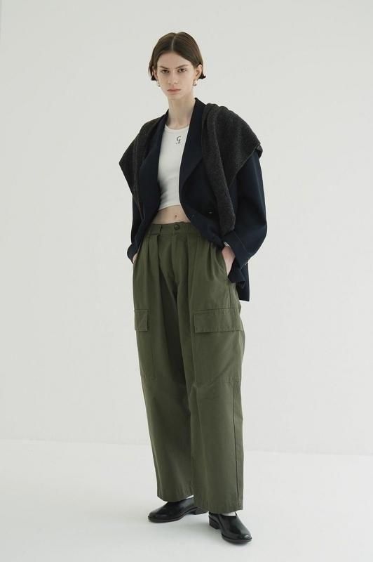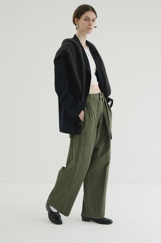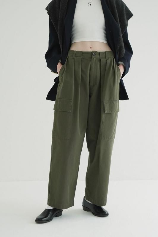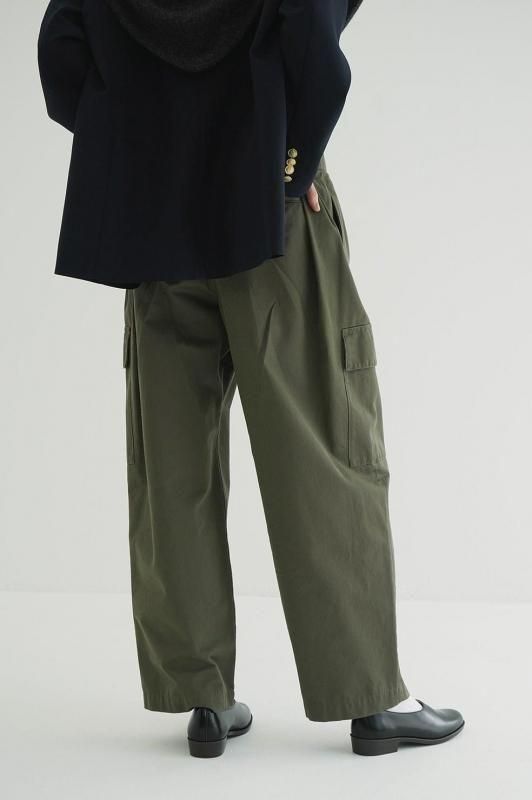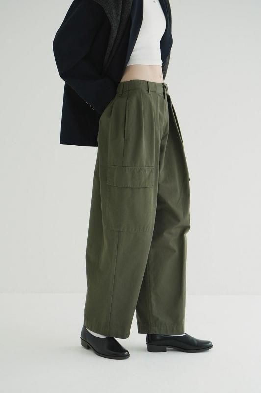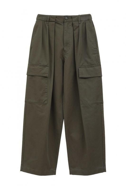ウエストのタックディテールが印象的な、ワイドシルエットのカーゴパンツ。