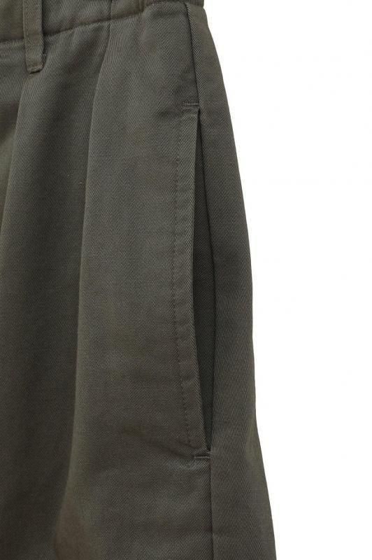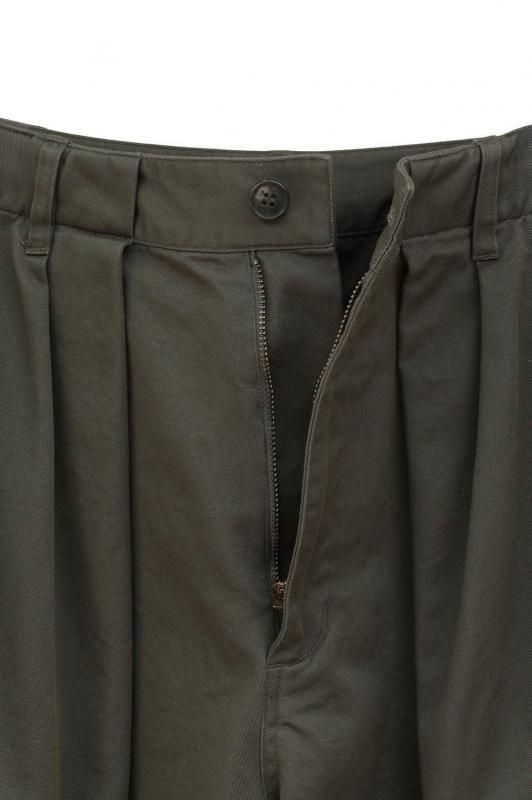タックの分量や入れ方にこだわることで立体的なフォルムを生み出し、ボリューム感がありながらも美しく見えるシルエットに仕上げました。ワンウォッシュ加工を施しているため、程よいカジュアル感があり、きれいめなブラウスと合わせたミックススタイルもおすすめです。