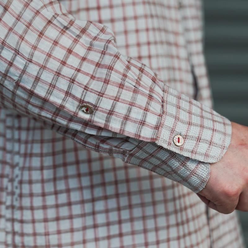 インドメイドならではの味のある素材使いやステッチワークも特徴の新型シャツ"GUPTA"。素材もインド製の手織りのカディーコットン。特徴的なステッチや真鍮素材のボタンなど、快適さだけではなく、ファッション性もしっかり兼ね備えています。