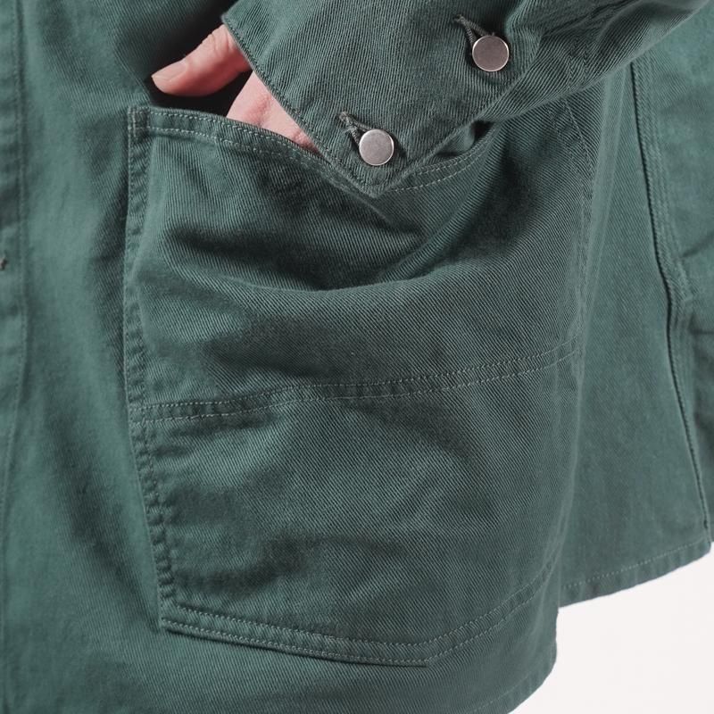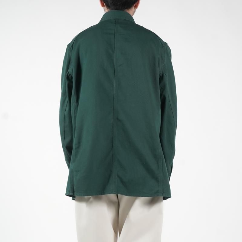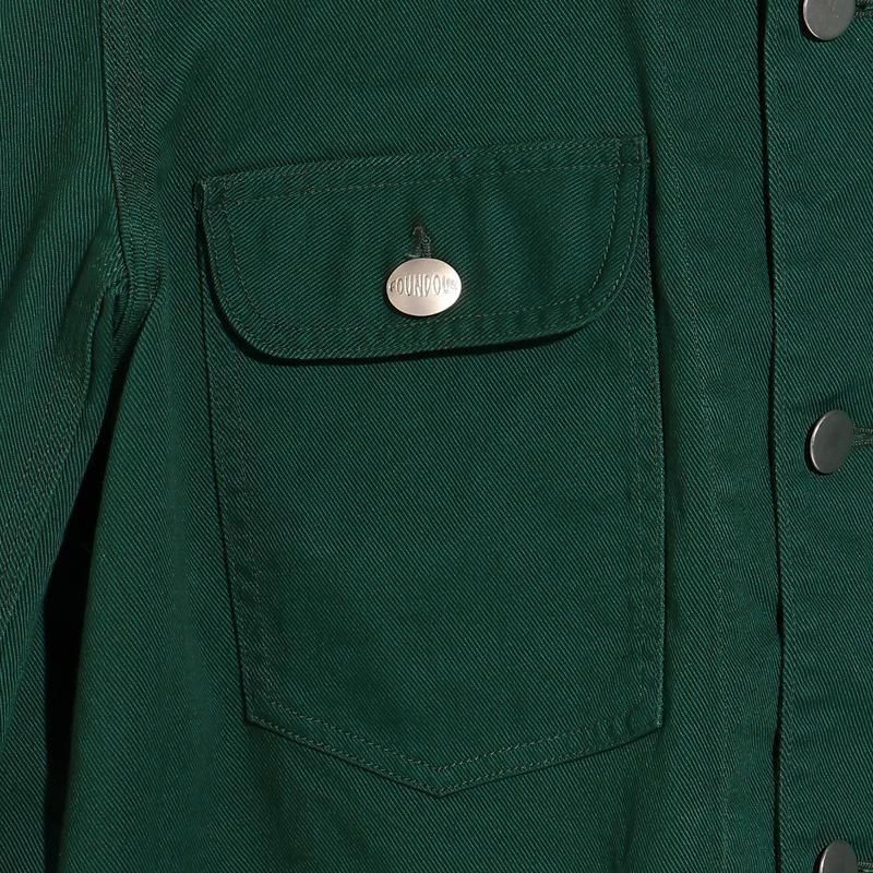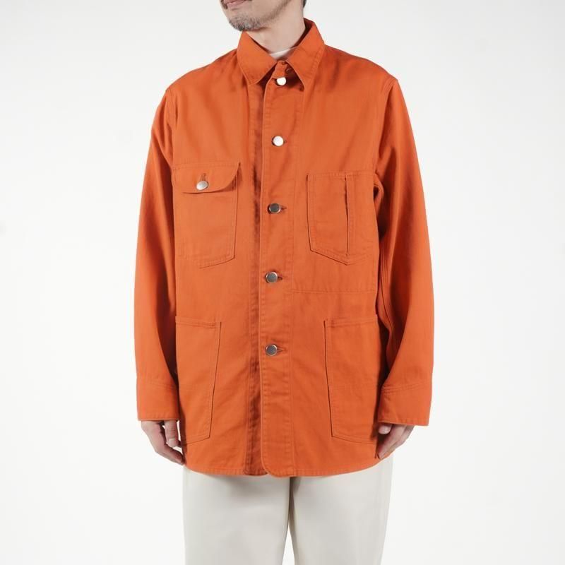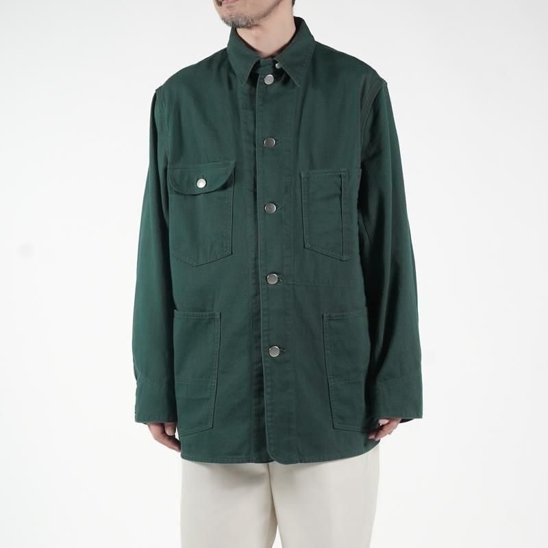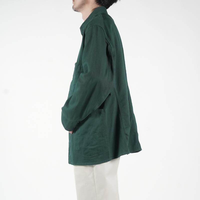 「最高にカッコいいカバーオールをつくりたい」。その想いを出発点にアーカイブを漁り、大手デニムブランドによる1930年代の1着に辿り着きました。チンストラップ付きで、ボタンはすべてチェンジボタンで構成。時代的にはまだテーラードの名残がありつつも、カバーオールらしいフォルムに変遷を遂げていった時期のアイテムです。そこにぼくは贅沢さを感じました。アクションプリーツなどの簡略化されたパターンではなく、テーラードの技術によって動きやすさが確保され、さらにはシルエットも立体的で美しいアイテム。そこに作業着としてのディテールも加わり、唯一無二の存在感を放ちます。こうしたアイテムはヴィンテージに忠実につくりたくなるところですが、〈FOUNDOUR〉では胸ポケットのみ、チェンジボタンに仕様をアレンジ。カラーバリエーションにもあえて遊び心を加えることで、ぼくたちらしい“ハズし”の提案をしています。