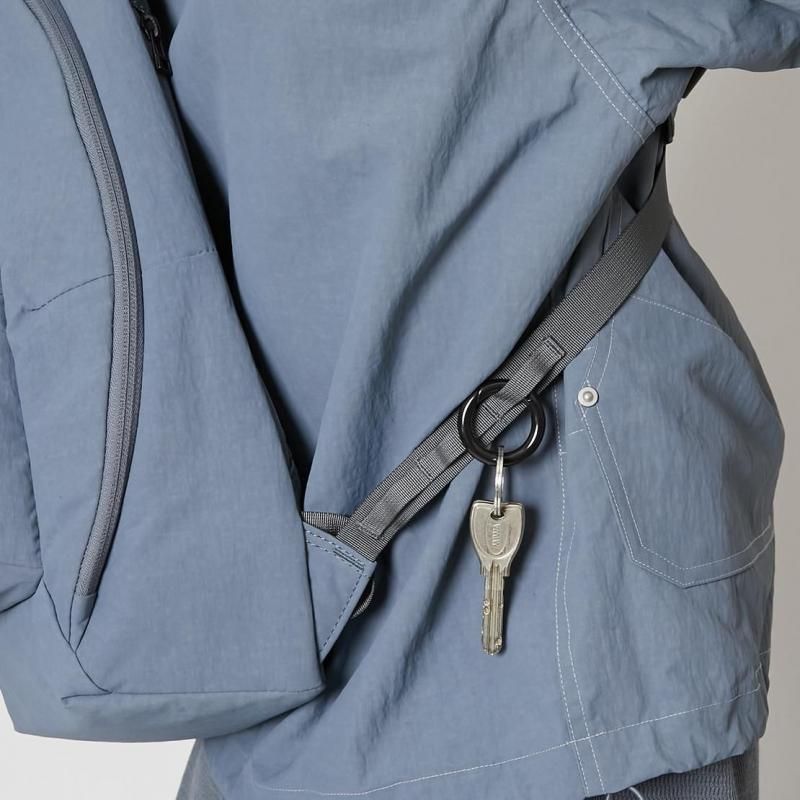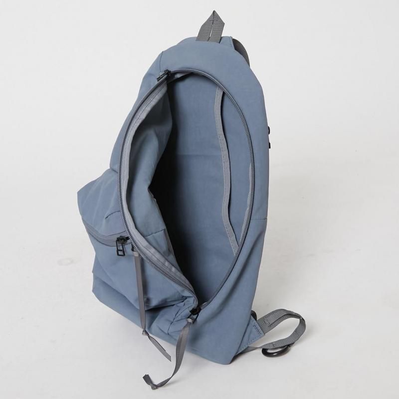クラシックなデイパック型のシルエットを進化させ、機能性にも考慮したアシンメトリーなパターン。身体との接地面に設けたファスナーポケットは、安全性も高いため貴重品などの収納に適している。ホールド感を高めるサブストラップも付属し、ストラップにはキーリングなどを取り付けることができるモールシステムを導入。生地に中綿をボンディングし、背中にはウレタンシートを入れることで、バックを落とした際にも中に入れたガジェットなどが壊れないよう配慮。