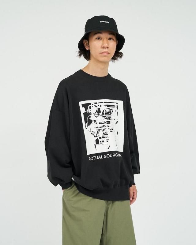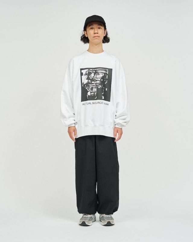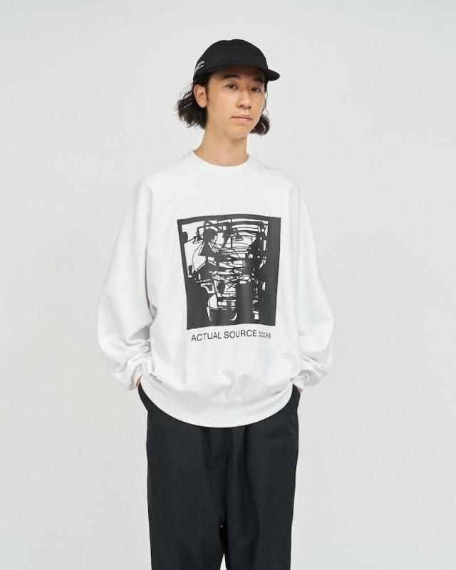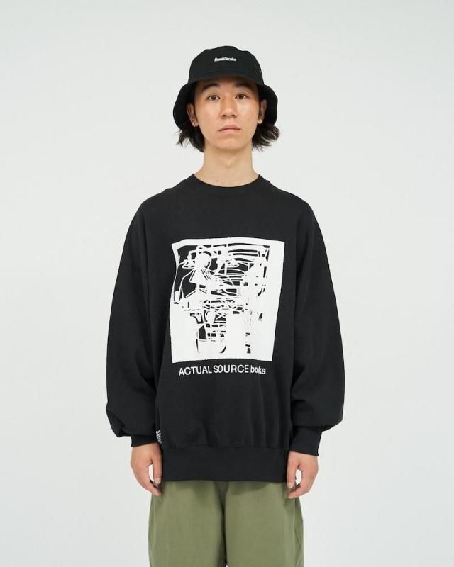出版やアート、アパレルまで多方面で活動するデザインスタジオ『Actual Source』とのコラボレーションによるカプセルコレクション。彼らが得意とするアートワークをフロントに落とし込んだスウェットシャツです。リトグラフ(版画)のようなタッチで表現されたグラフィックは、抽象と具象が交錯する奥行きを感じさせるデザイン。大胆に配置されたプリントが、シンプルなボディにモードな存在感を与えています。ライトオンスの柔らかな裏毛素材を使用し、長いシーズン快適に着用可能。ドロップショルダーによるオーバーサイズシルエットでリラックス感があり、スタイリングに抜け感をプラスする一着です。