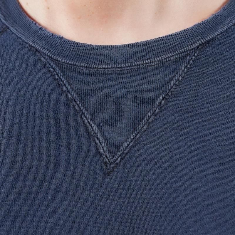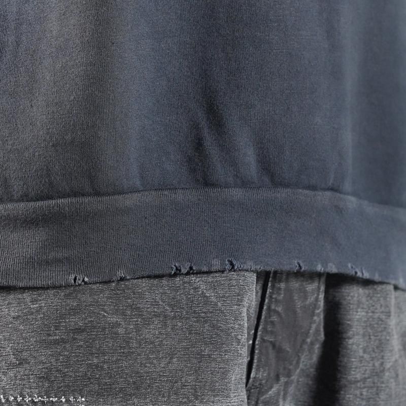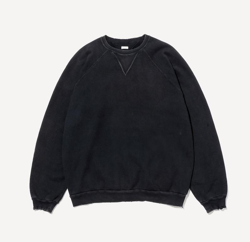 ヴィンテージの薄く伸びきって緩くなったリブや、Vガゼットの歪みなど、あえて崩れたシルエットに設計