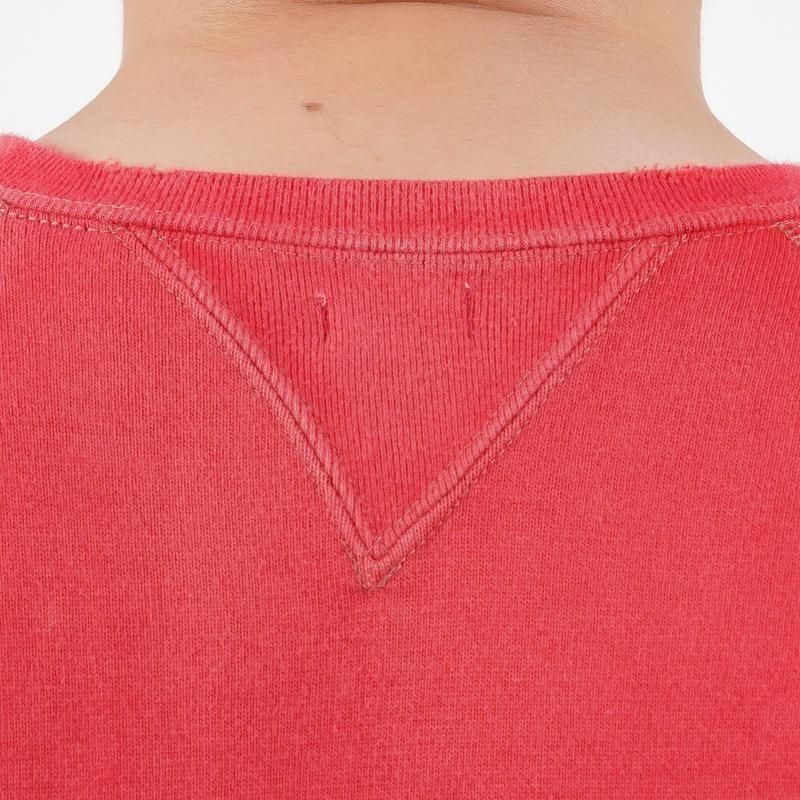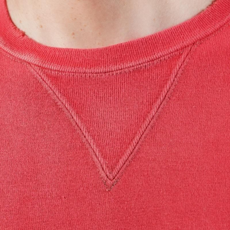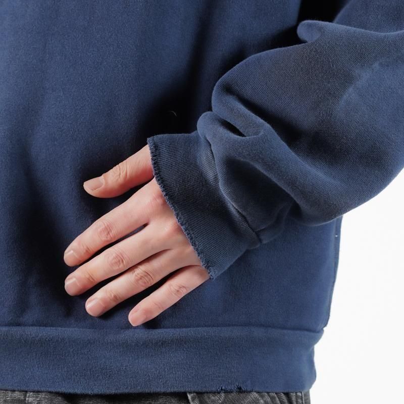 【素材】表地はヴィンテージを解析して作った吊り裏毛、1時間に1メートルというゆっくりとしたスピードでしか編み立てられないが、糸に余計な負荷を掛けないで編み上げることで、肉厚ながら固くならず、ふっくらとした風合いで仕上げた