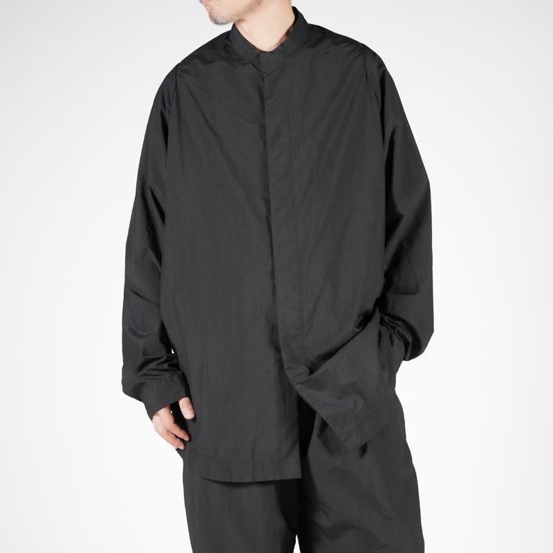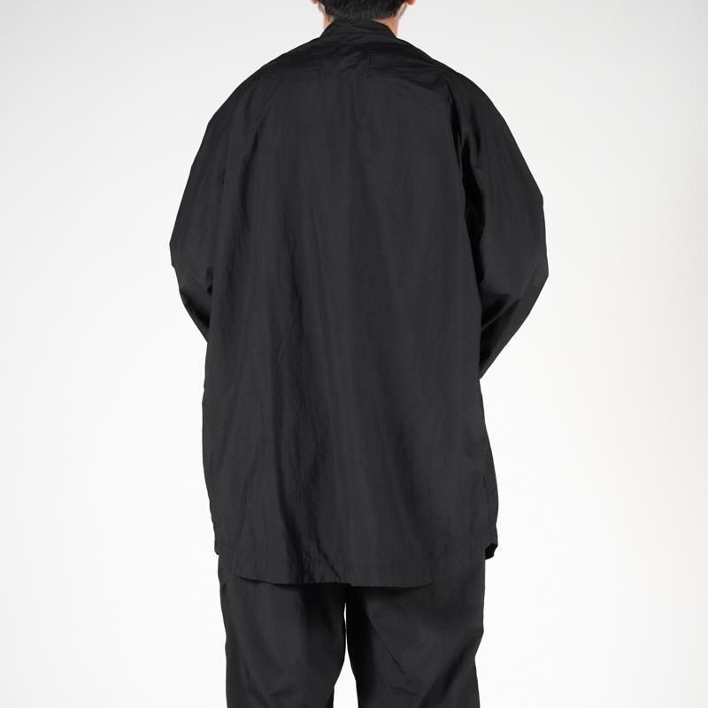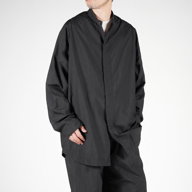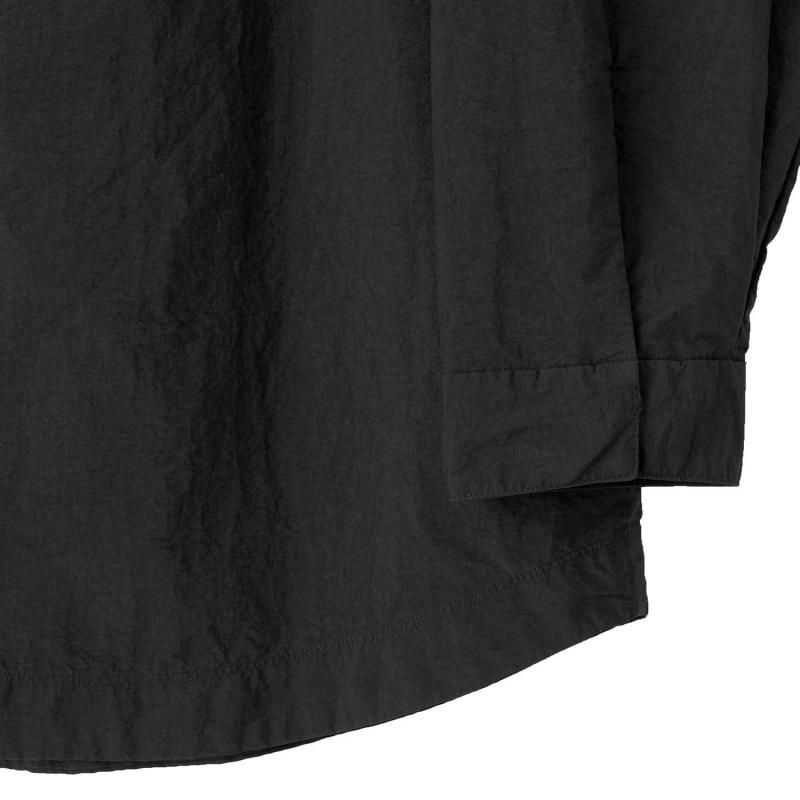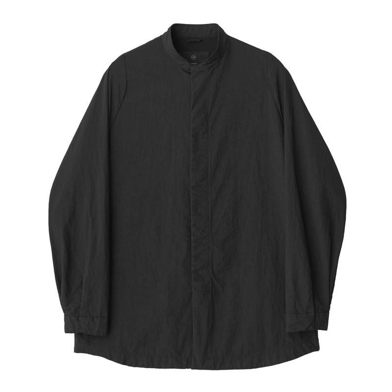 PACKABLEシリーズからリリースされるCartridge Shirt MINUS 。商品名はシャツなのですが、着用感はジャケットに近くシャツ以上、ジャケット未満のこちら。Tシャツやシャツにの上からでも軽く羽織るライトアウターでナイロン素材の為、ストレスを全く感じない軽い着心地がとても魅力的。シルエットはゆったり目ですが、肩はドロップしないように狭く設計、 裾は軽くラウンド、インせず外に出してきてもらう前提のシャツです。