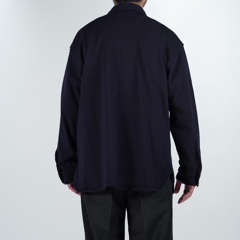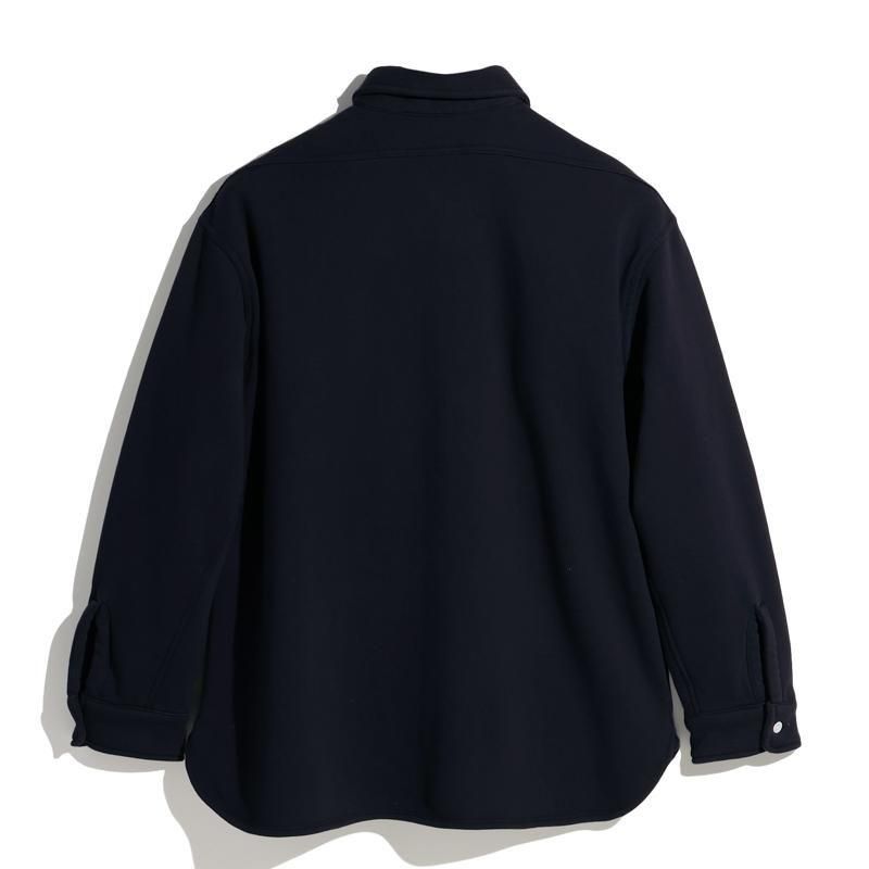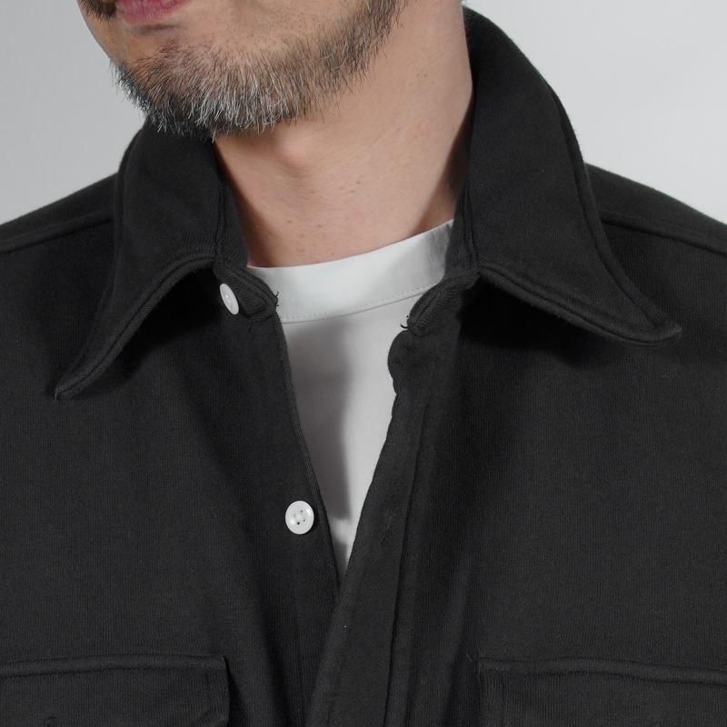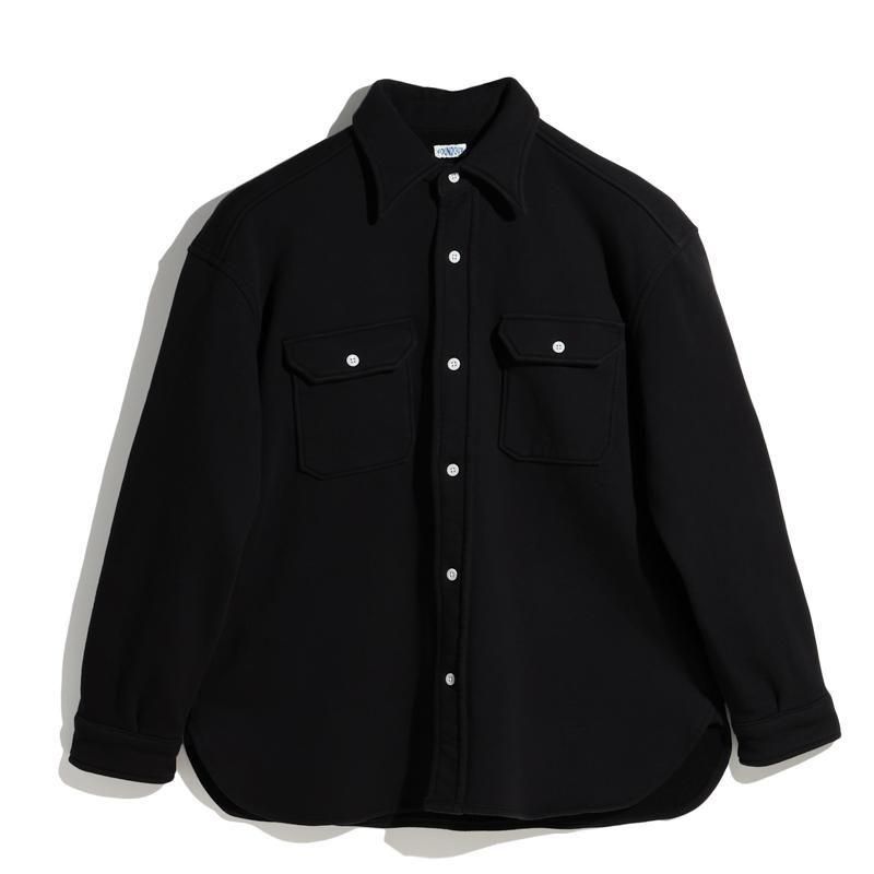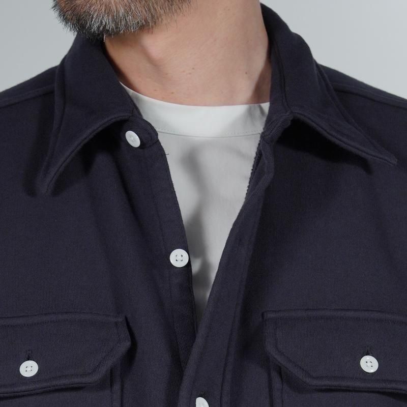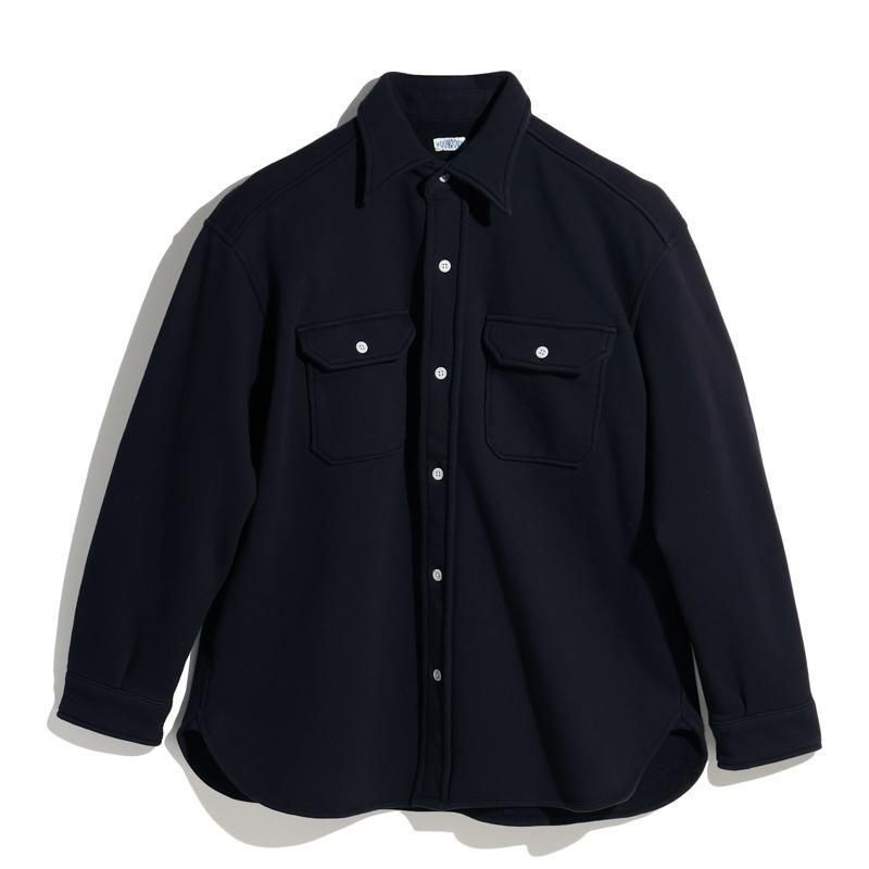 このシャツのリファレンスになったのは、1950年代のチェックのネルシャツ。すごく厚手の生地に、ステッチがグッと食い込み、ふっくらと立体感のある縫製仕様が特徴的でした。その雰囲気をだしたくてアイデアを練った結果、スエット生地でワークシャツをつくろうと思い当たりました。