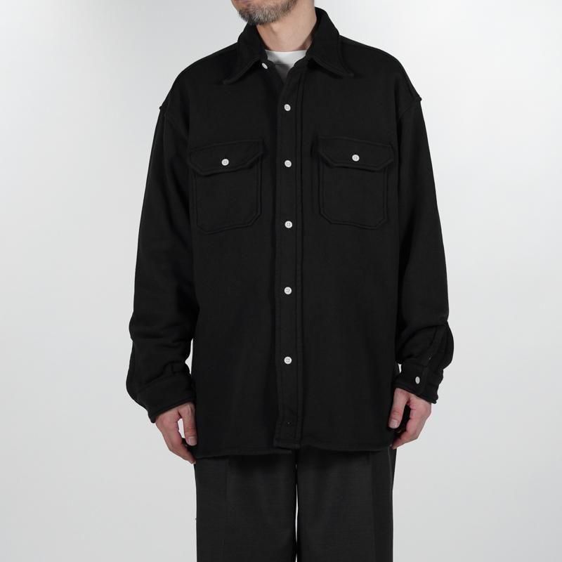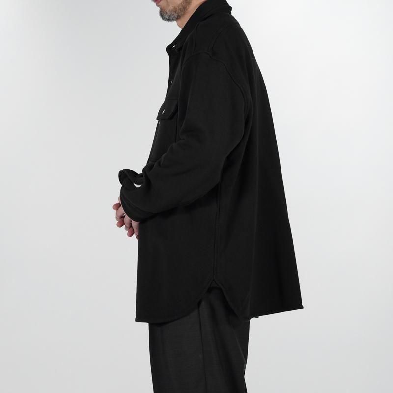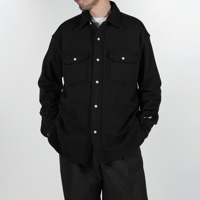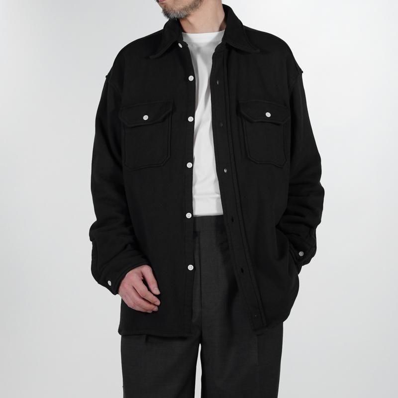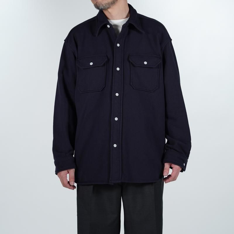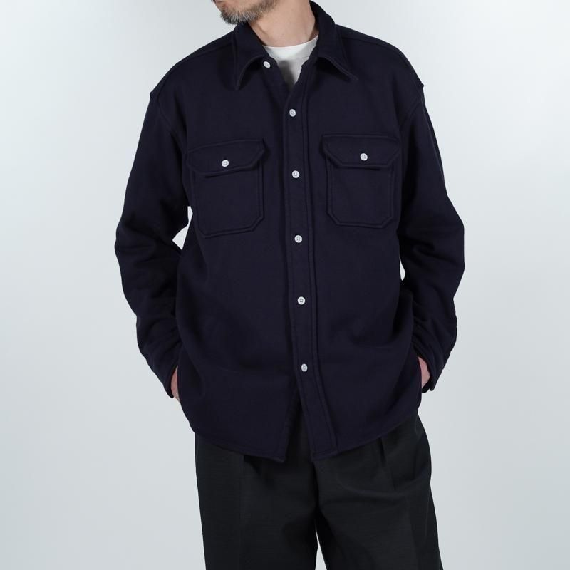 このシャツのリファレンスになったのは、1950年代のチェックのネルシャツ。すごく厚手の生地に、ステッチがグッと食い込み、ふっくらと立体感のある縫製仕様が特徴的でした。その雰囲気をだしたくてアイデアを練った結果、スエット生地でワークシャツをつくろうと思い当たりました。