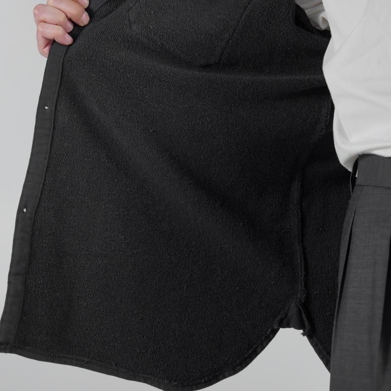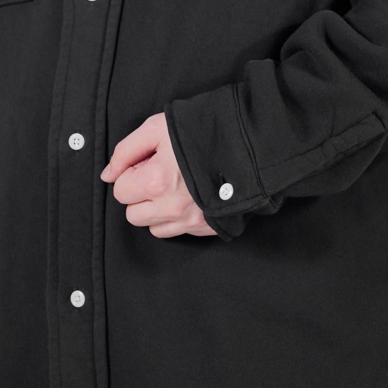 だけど、スエットでシャツをつくろうとすると、どうしても可愛らしいアイテムに仕上がってしまいがち。ですが、今回はパターンにもしっかりとこだわっているので、真面目でかっこいいスエットシャツに仕上がっています。羽織ってみると、シャープな襟のラインや、品のあるアームや見頃のシルエットに惚れぼれすると思います。フランネルよりも当然柔らかくて軽いし、肌触りも優しくて、着心地も抜群です。狙っていた膨らみのある縫製仕様もしっかりと表現できて、大満足の仕上がり。真冬のインナーとしても、きっと大活躍してくれるアイテムです。