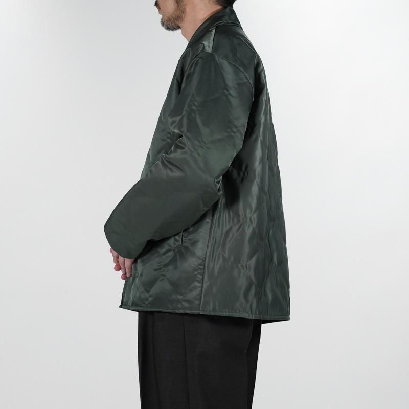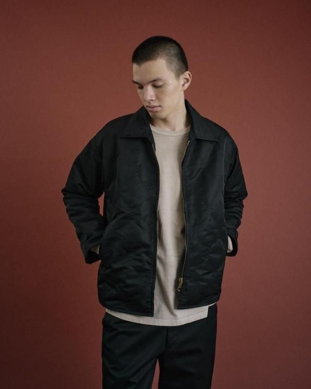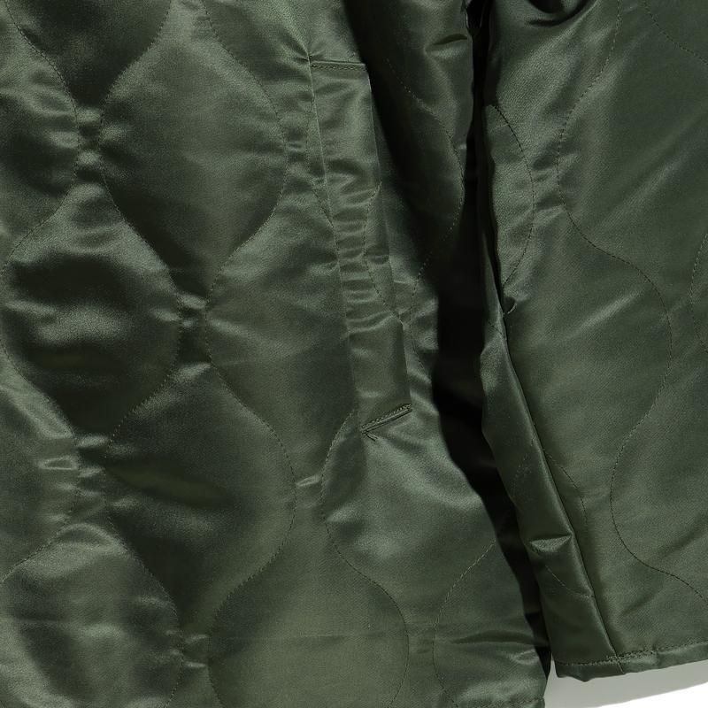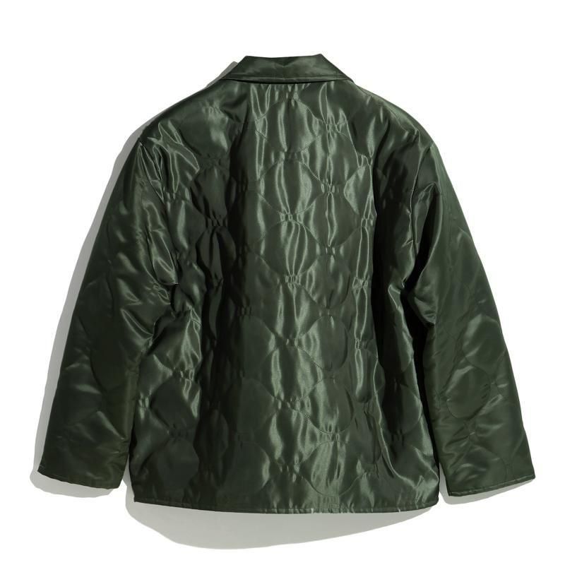 本来はスーベニア用なので良くも悪くもつくりは適当でしたが、〈FOUNDOUR〉ではそうしたチープさを残しつつ、着やすくアレンジしています。とくにこだわったのはパターンで、平面的だったものにすこしだけ立体感を加え、袖を通したときに違和感のないシルエットを目指しました。ベトジャン特有の刺繍もすべて排除して、極シンプルにつくり直しているのもポイントです。裏地には同色オリーブのナイロン素材をあしらっています。「グランドクルー用のMA-1と合体させた」という裏ストーリーもぜひ楽しんで欲しいです(笑)。