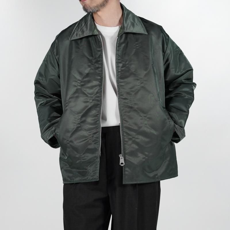 ベトナム戦争で勝利をしたアメリカ軍の兵士たちが、戦時中に使用されたパラシュート生地や寝具をリメイクしてつくったと言われるベトジャン。さまざまな資材が用いられたため、ものによって生地やつくりも色とりどりですが、今回はヘチマ柄のキルティングを使用したジップアップブルゾンをつくりました。
