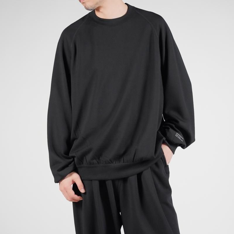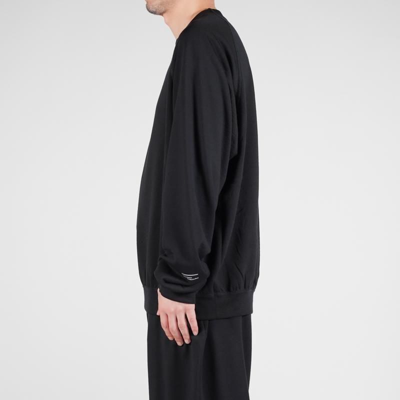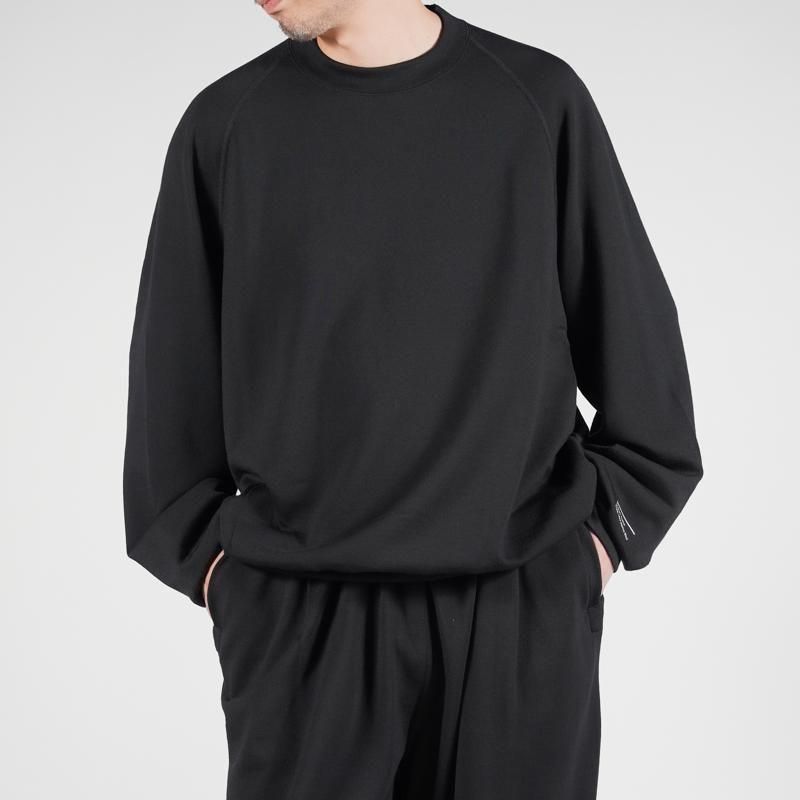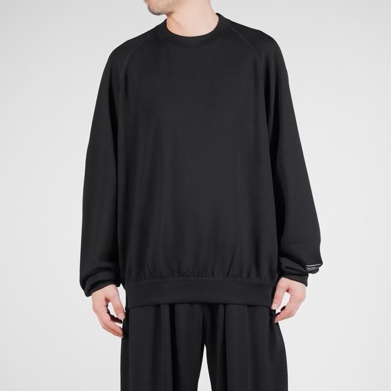 通常よりも腕を前付きに設定したラグランスリーブと、脇下のマチにより、快適な腕の動きをサポート。ハギ目はフラットシーマーで縫製することで、縫い代が肌に当たるストレスを軽減。