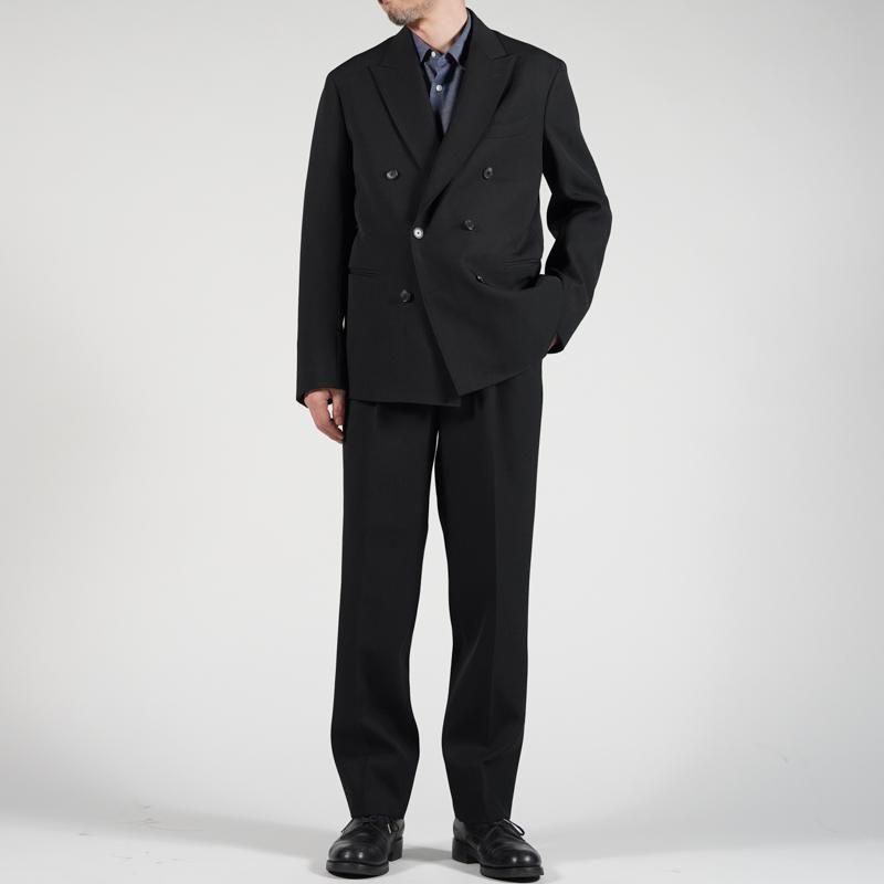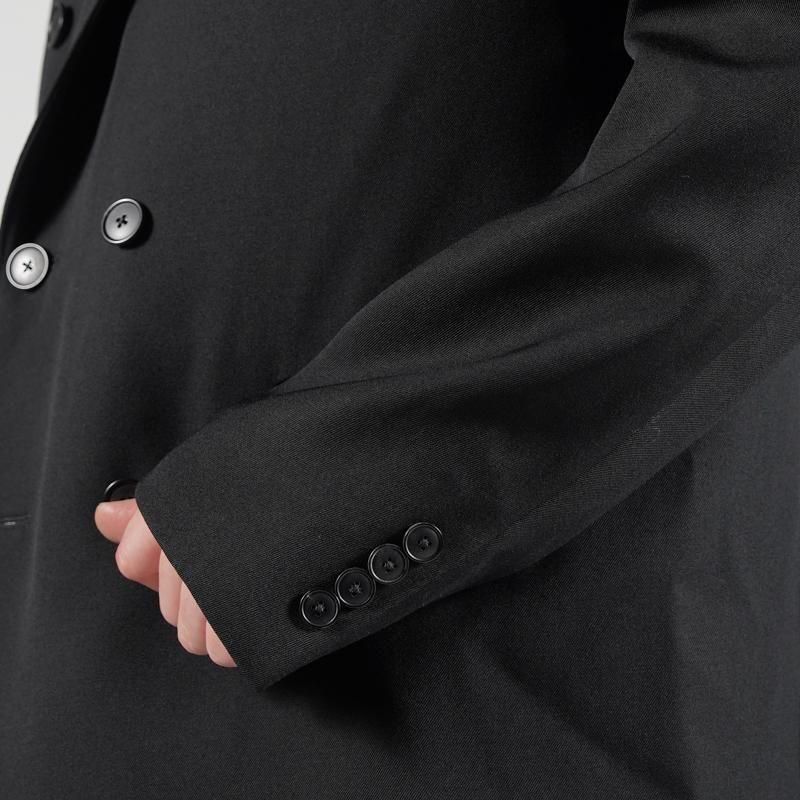 創業150年の尾州の老舗機屋のウールギャバジン生地を使用。番手の太い糸で上品な艶と力強いハリをもたせたドライな生地感ハリのある生地が、美しいシルエットを更に引き立ててくれます。