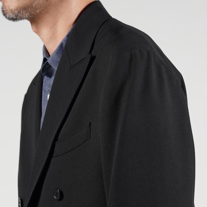 キッチリとしたジャケットの中にもリラックスした顔を作り出しています。全体の作りとしては、ウエストシェイプを入れずに現代的な新しいフォルムを表現。袖は、2等袖というクラシカルな袖を採用している為、動き易い前振りの袖になっています。また、肩周り、袖や襟作りなどに関しては、本格的なテーラード仕立てている為、こだわりのクオリティになります。