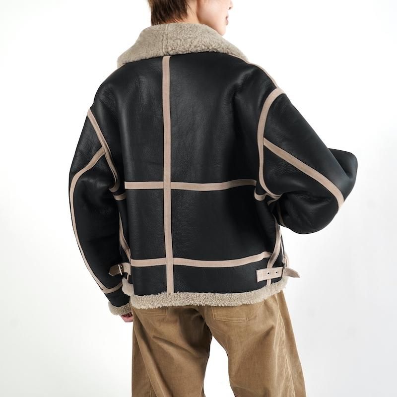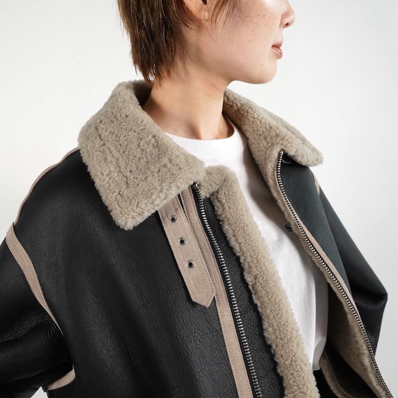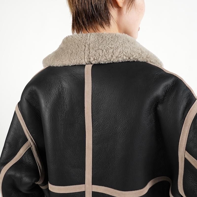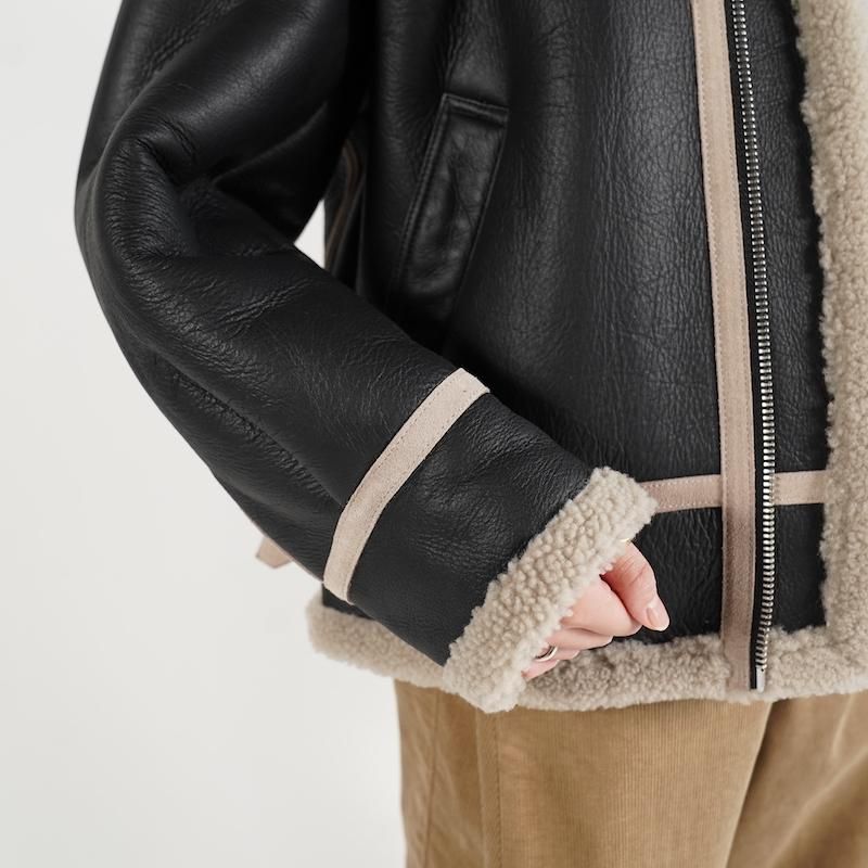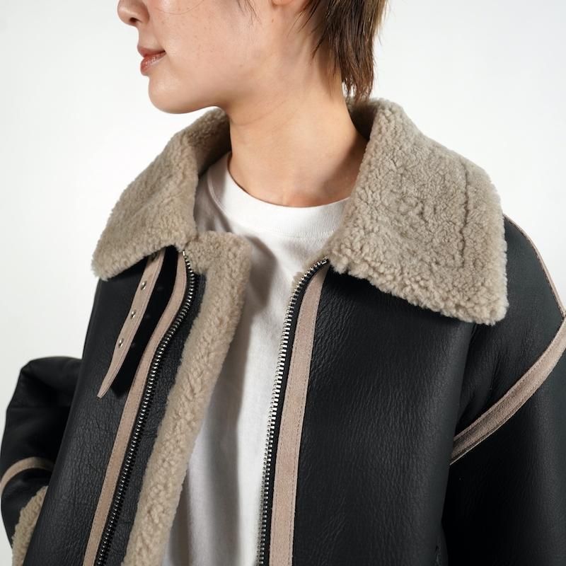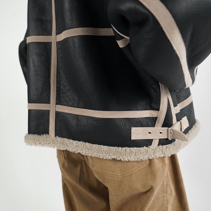 B-3の特徴を活かし、皮革面にナッパラン加工を施して毛足をカールさせることで、クラシカルな佇まいに仕上げたムートン。ナッパラン加工による光沢感を最小限に抑え、より落ち着いたマットな仕上がりに調整することで、洗練されたフライトジャケットを表現。