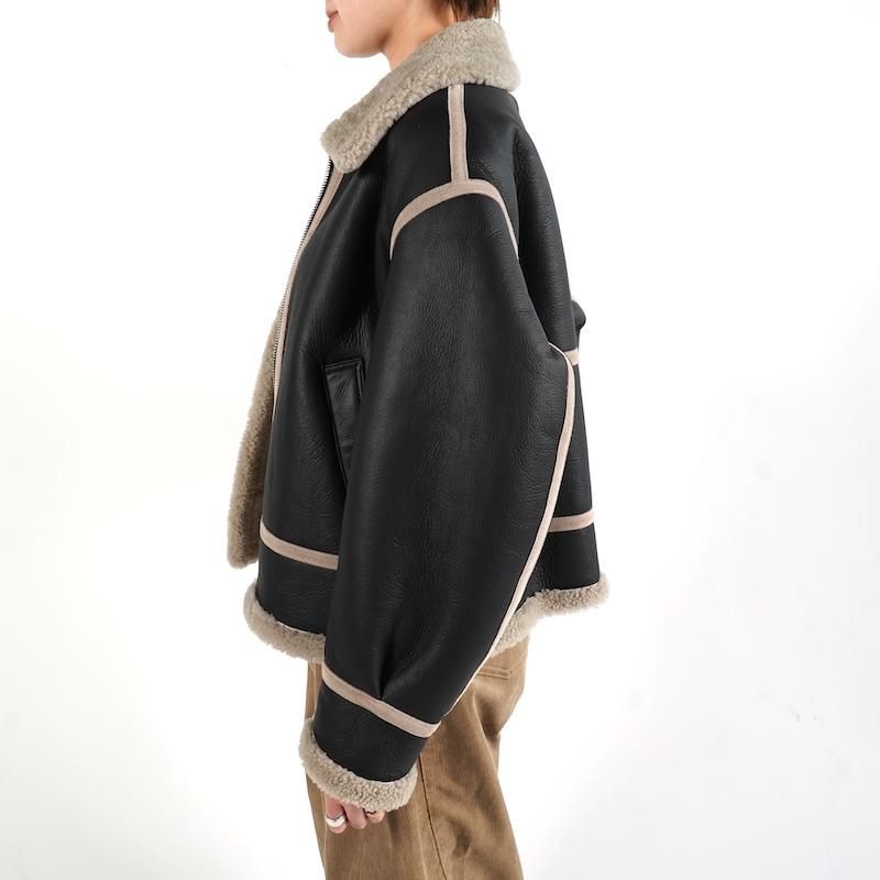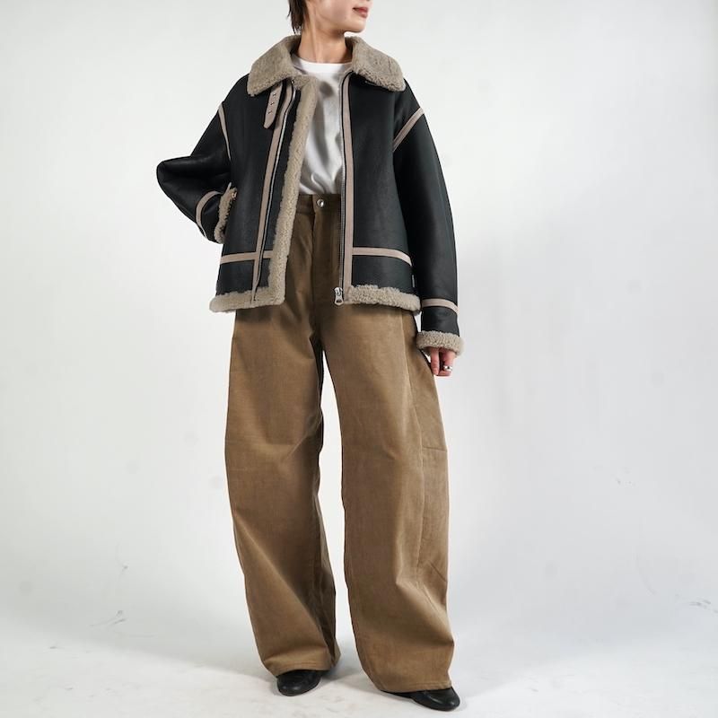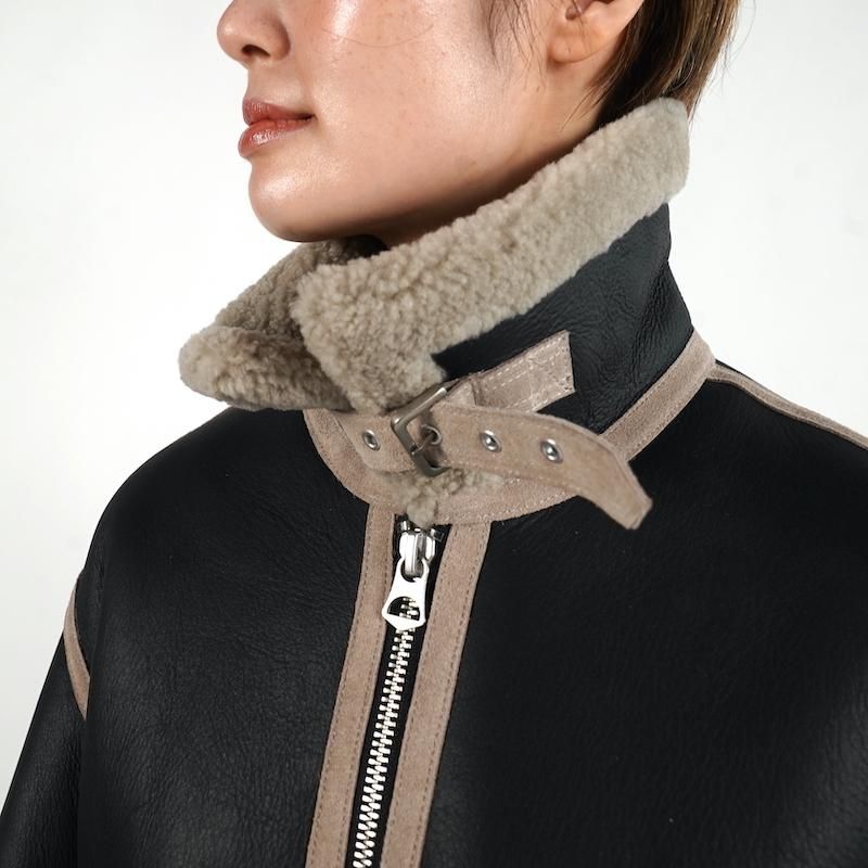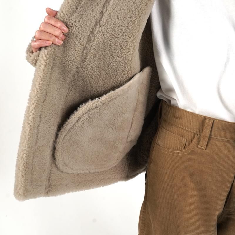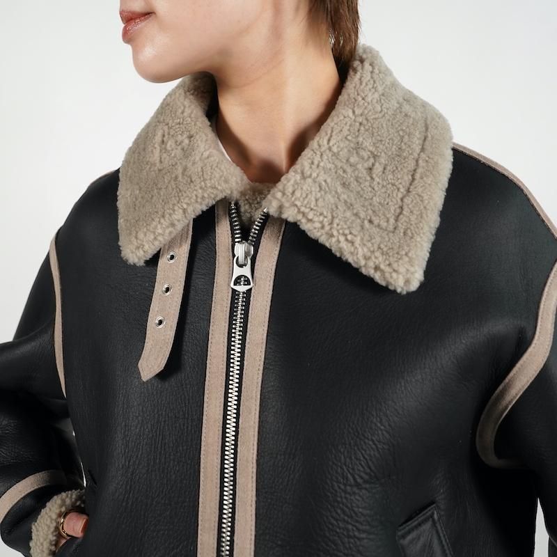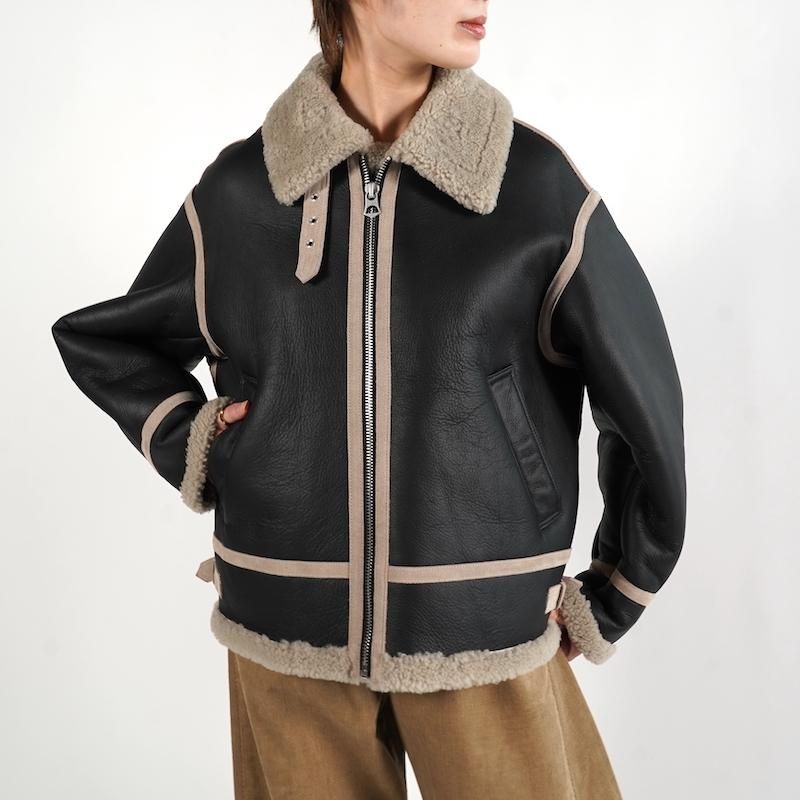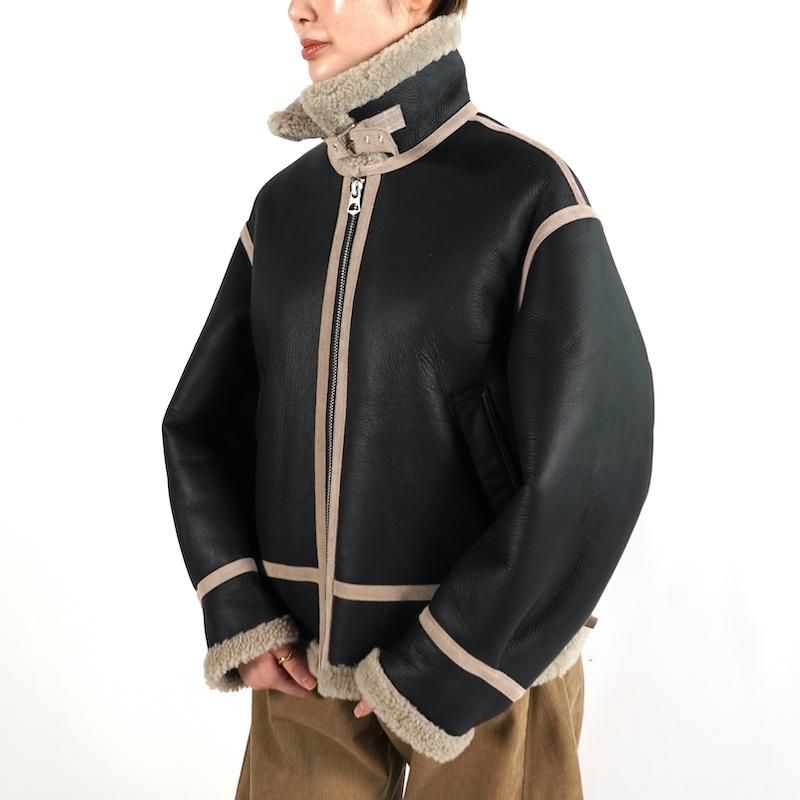 B-3の特徴を活かし、皮革面にナッパラン加工を施して毛足をカールさせることで、クラシカルな佇まいに仕上げたムートン。ナッパラン加工による光沢感を最小限に抑え、より落ち着いたマットな仕上がりに調整することで、洗練されたフライトジャケットを表現。