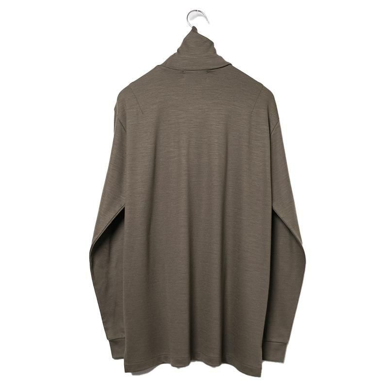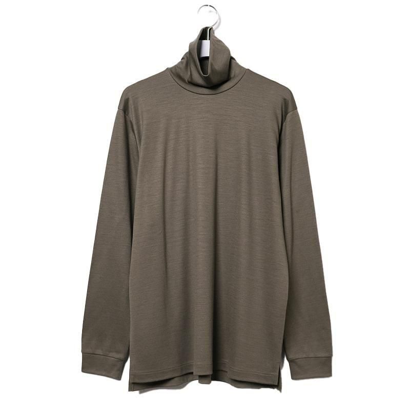 直接肌に触れても心地よいコンパクトなサイズ感のタートルネックのカットソー。素材には、ウール糸SUPER120'Sスーパーエクストラファインメリノウール糸を使用しており、触れていただくだけで良い素材を使用しているのが分かると思います。もちろん直接肌に触れてもまったくチクチク感のない、ソフトでしなやかなタッチになります。薄手なので、単体での着用はもちろんジャケットやコートの中に仕込んでもだぶつかず、さらりと着用して頂けます。秋から春までの長い間、活躍する上質なカットソーです。裾にスリットがデザインされており、上品な雰囲気に仕立てられています。