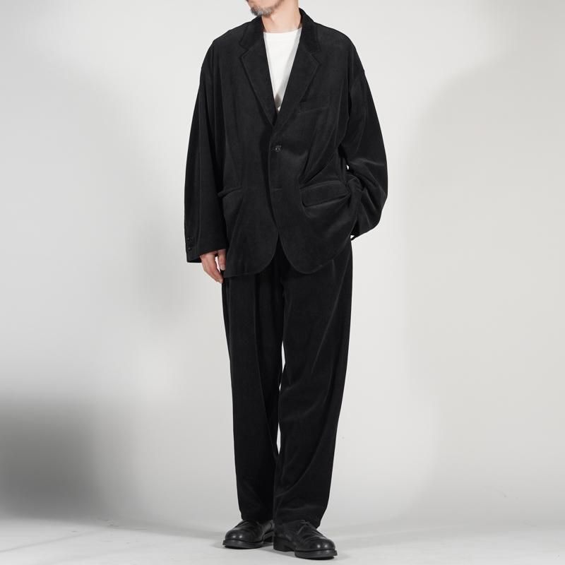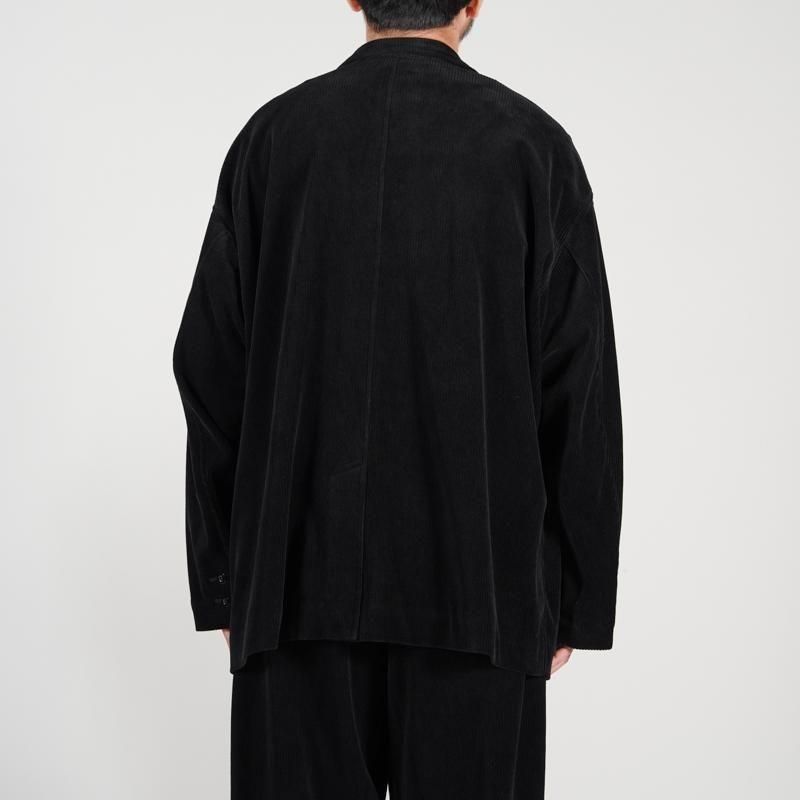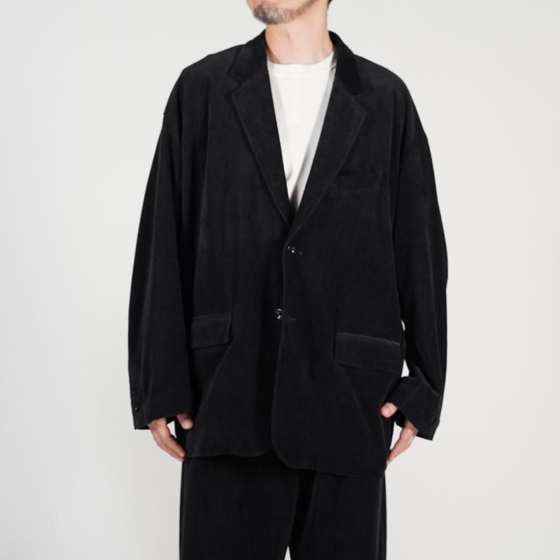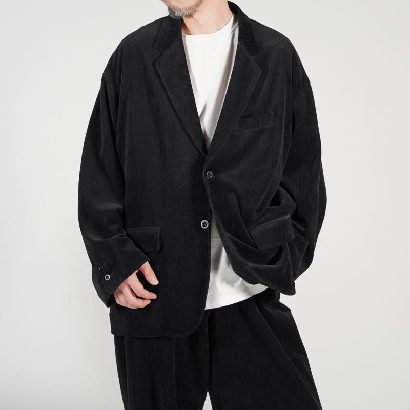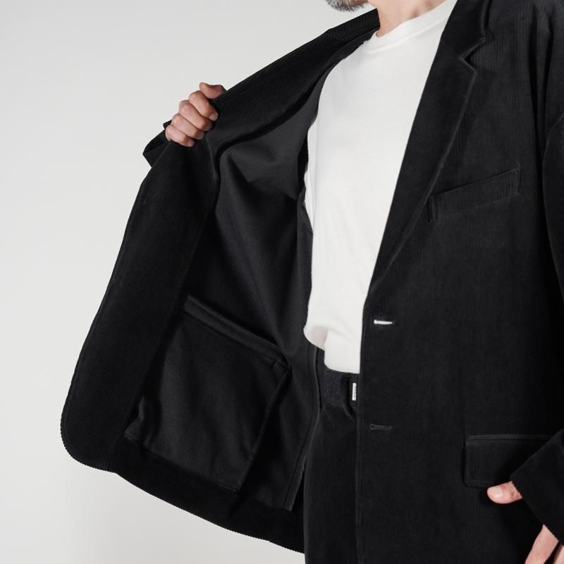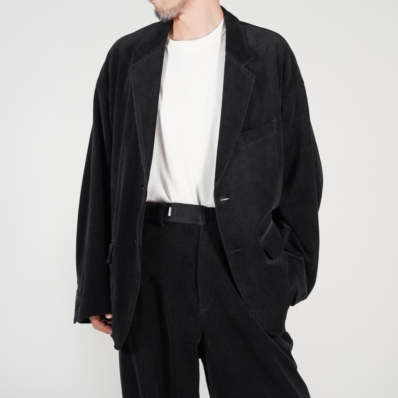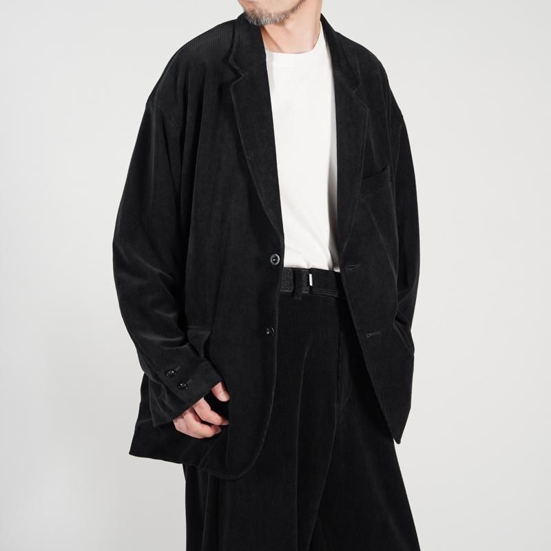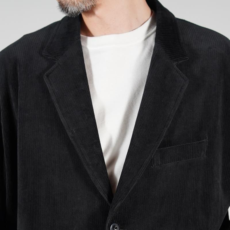 36Gというハイゲージの縦畝ニットコール素材。キックバックが非常によく、型崩れしにくい。ドロップショルダーでボリュームのあるシルエットのジャケット。ストレッチ性のある快適な着用感で動きやすくアクティブなスーチングスタイルが楽しめる一着です。