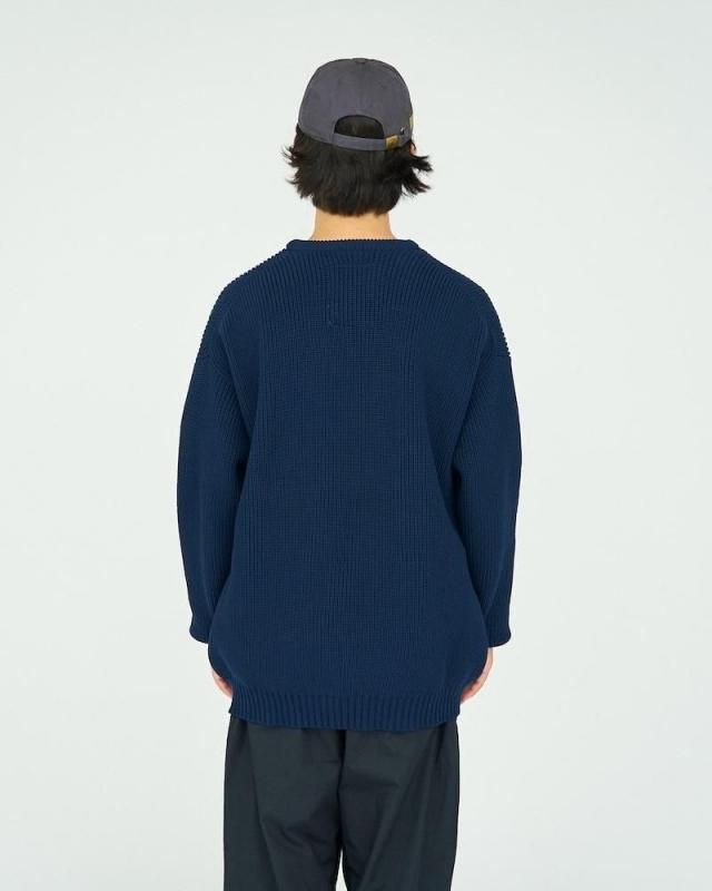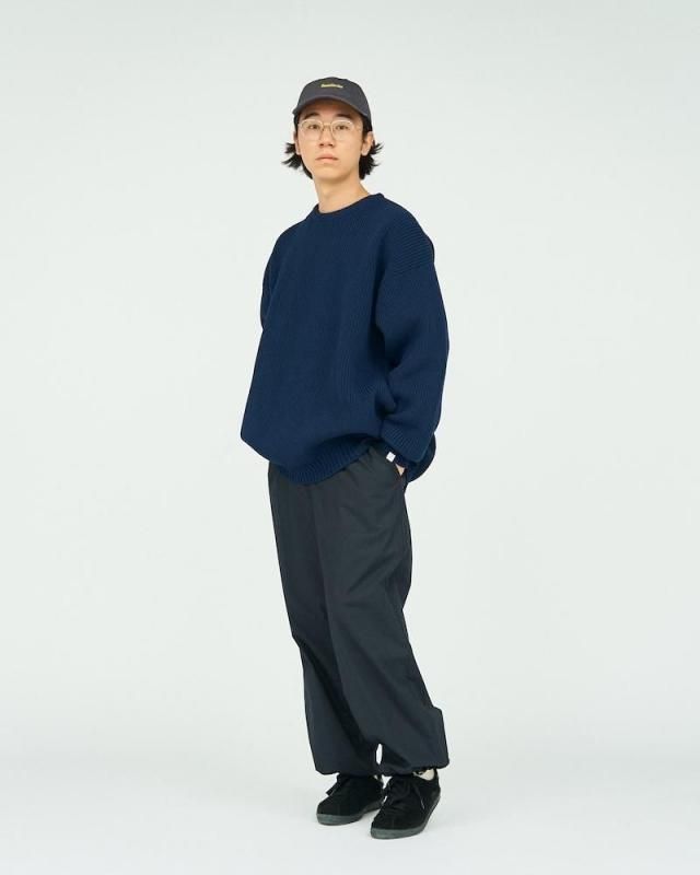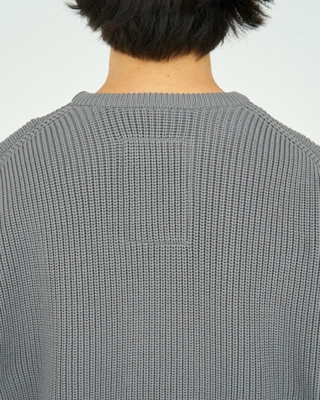 手に取ると驚くほど軽いクルーネックニット。ソフトでふっくらした「デルタ糸」と軽やかに伸びて身体に馴染む「ソロテックス糸」を複合させたテックニット。シワになりにくく型崩れにも強い、通気性と速乾性に優れた春先と秋口に活躍する1枚。
