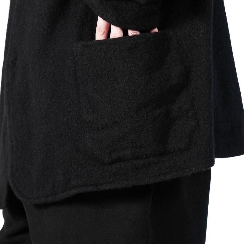 継続展開の製品で強縮絨加工をかけて、独特な歪みを出したウールジャケット。